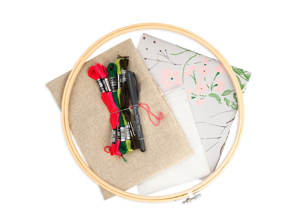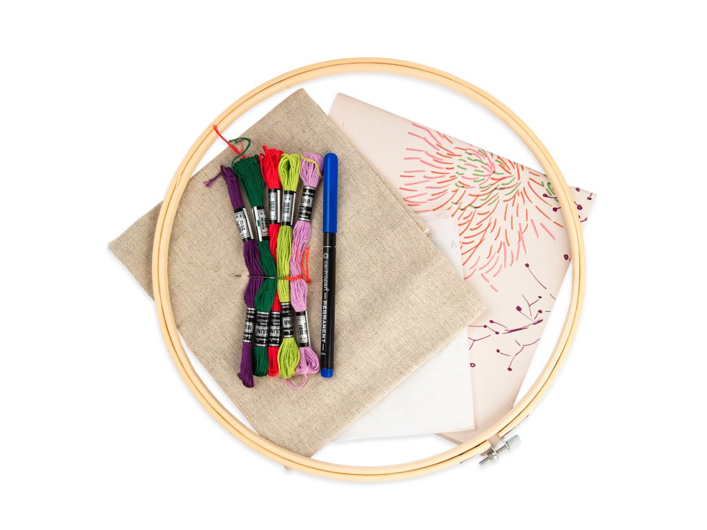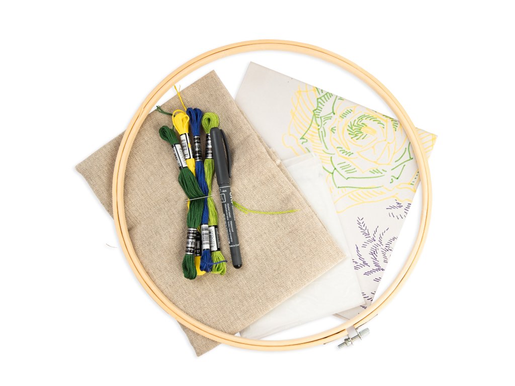 Vyšívací sada obsahuje: Předlohu předlohy Zlatky Lamrové látku (50:50 bavlna/len) vlizelín fólii na překreslení fix ostrou vyšívací jehlu bavlnky vyšívací bubínek.